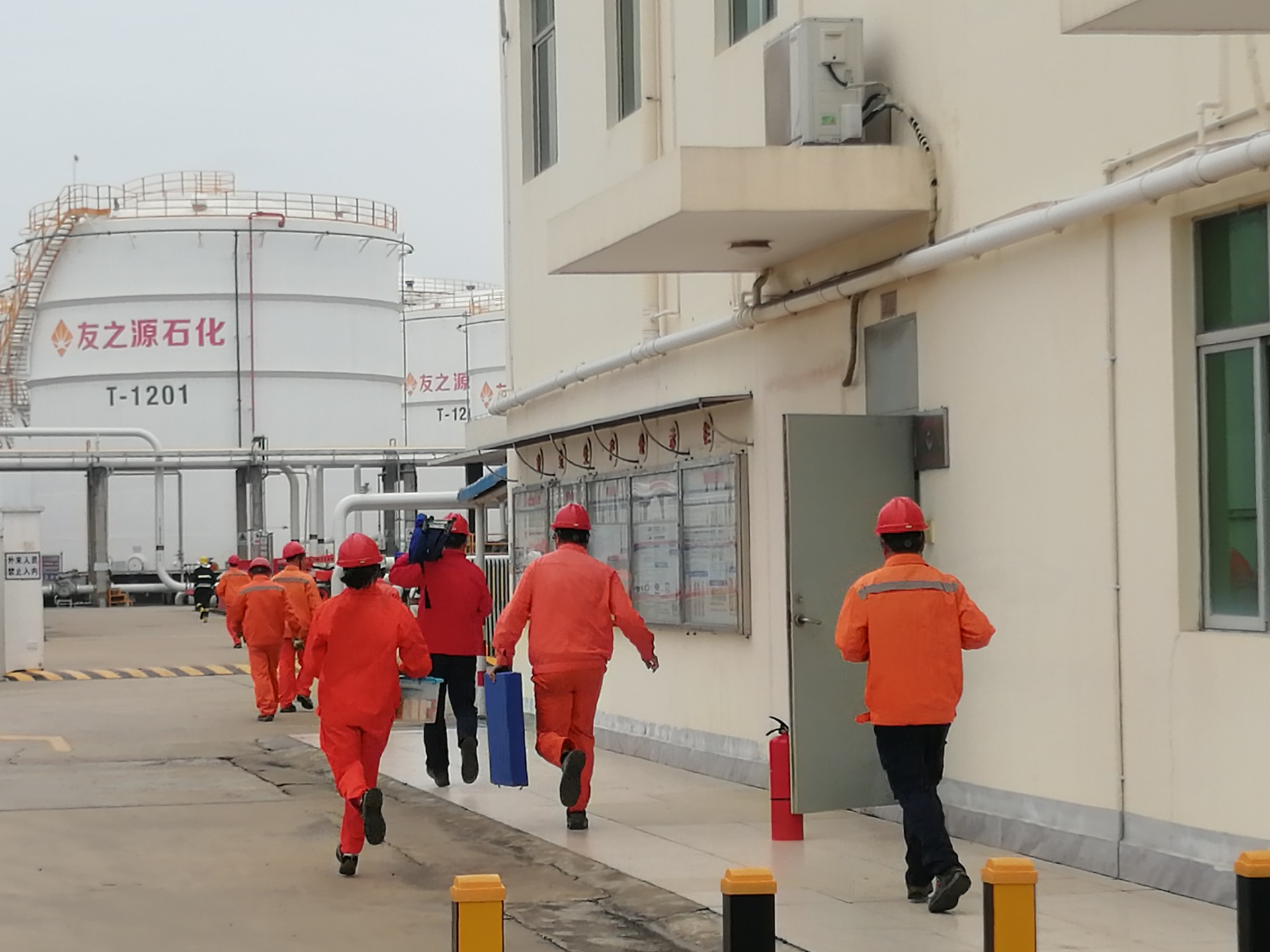 興盛油庫組織全體員工模擬進行T1108罐汽油泄漏、火災(zāi)事故應(yīng)急演練