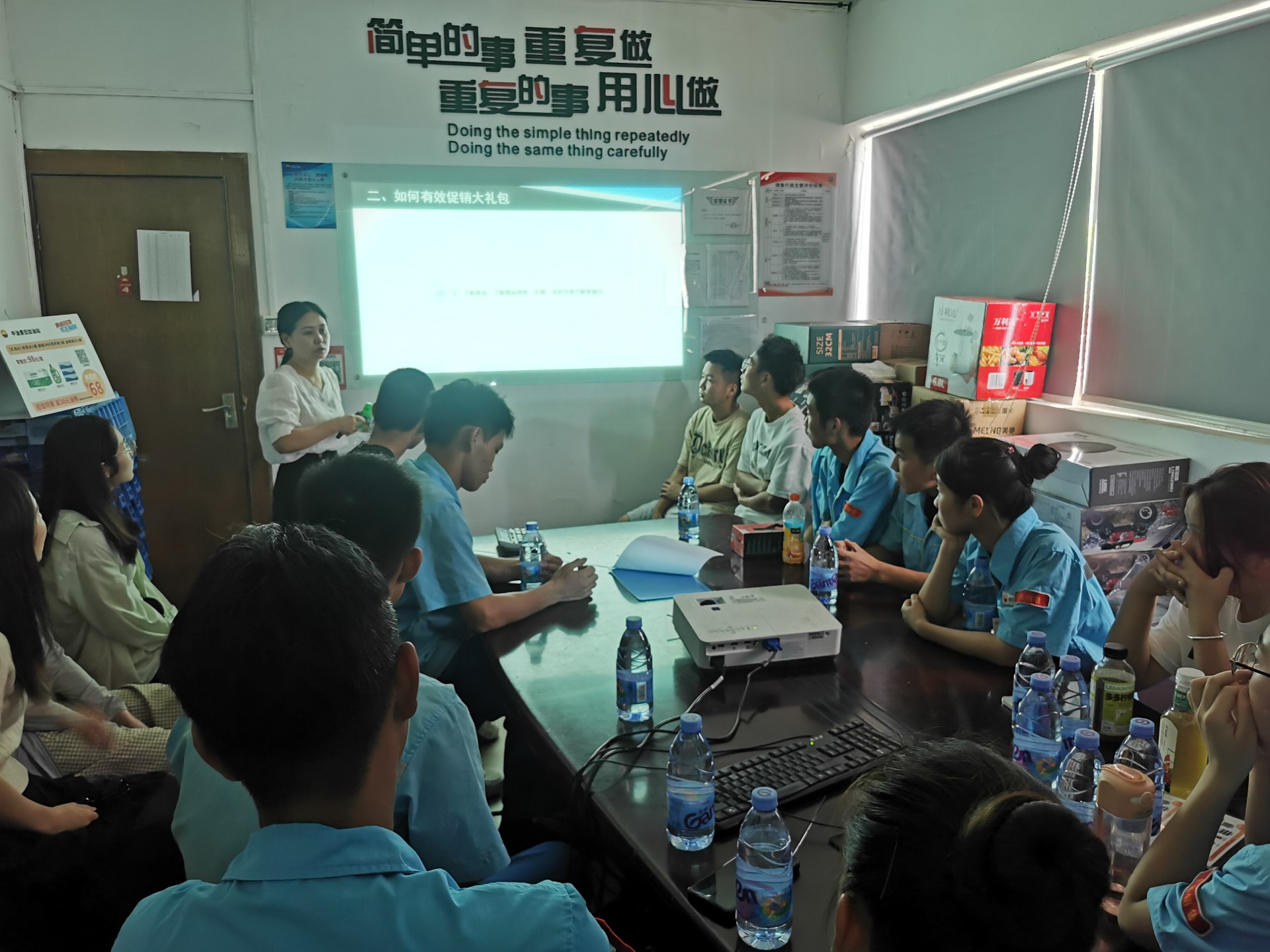 7月27日,非油品部在景田加油站會議室為新田、景田加油站的員工開展禮包促銷宣講,宣講內(nèi)容包括為什么要銷售大禮包、如何有效促銷禮包、新禮包產(chǎn)品的產(chǎn)品宣傳及獎勵機制。